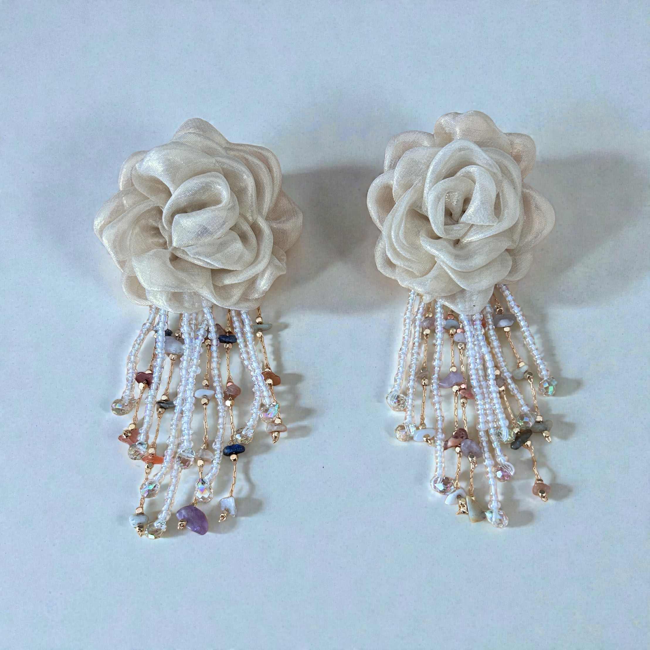 Pendientes de flor con cadenas de piedras