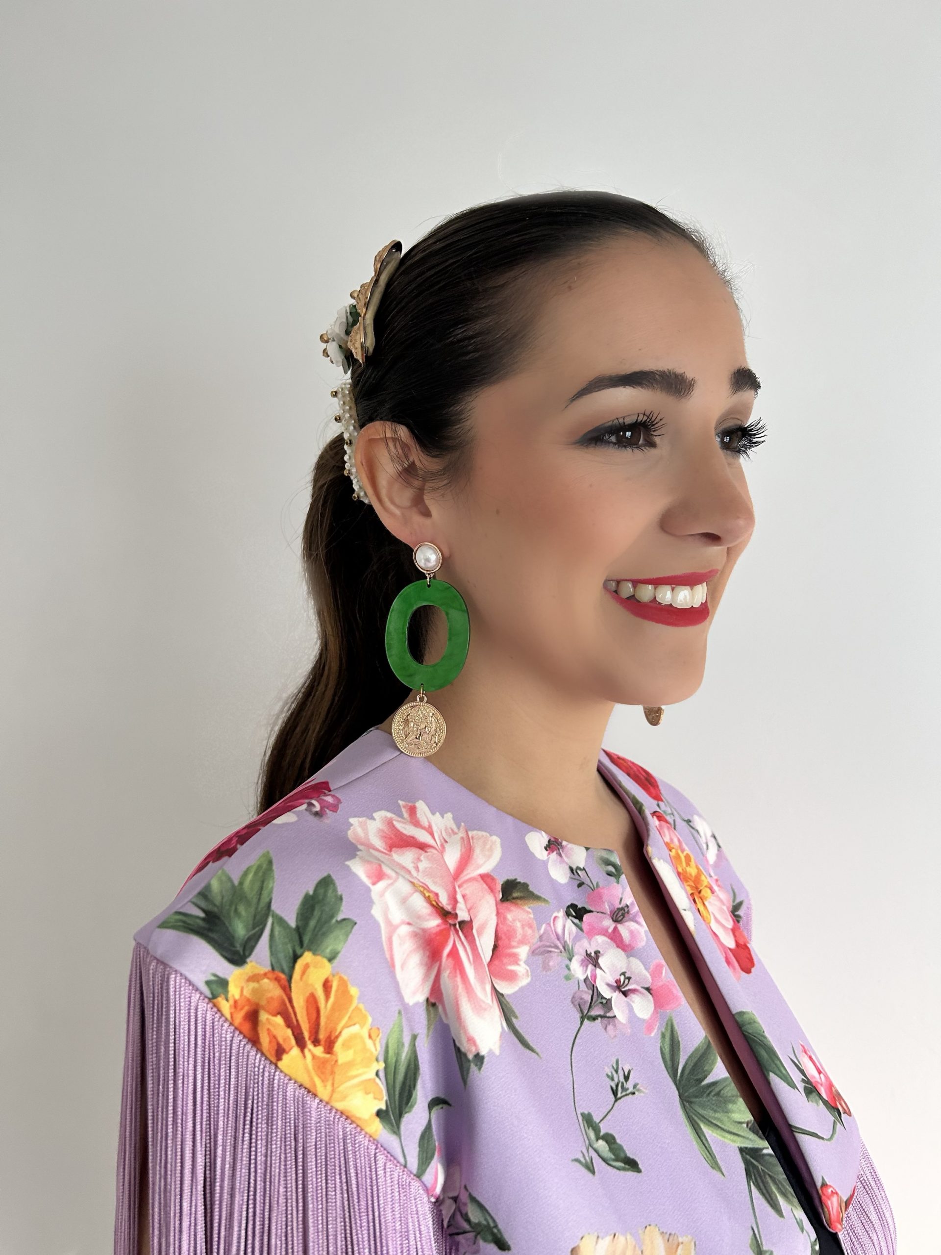 Pendientes de flamenca con aros verdes y acabado en moneda